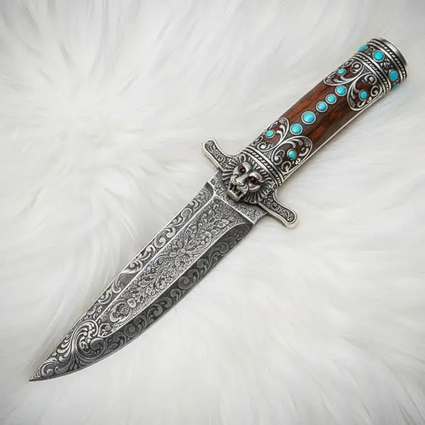 - High-quality materials—exotic woods, bone, horn, premium steels, maybe even Damascus steel or similarly patterned steels. ·