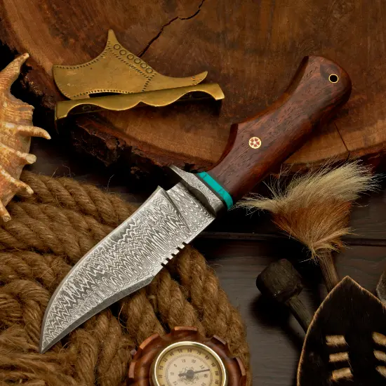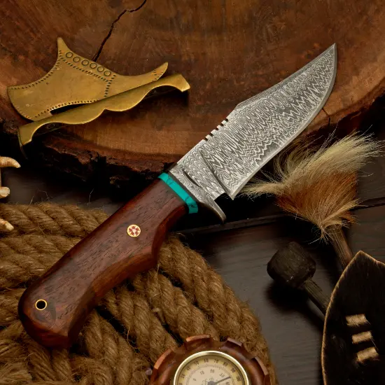 Modelled with a forged Damascus steel knife blade spotlighting the iconic “raindrop” pattern, this knife isn’t just another poaching tool—it’s a monument to mastery. Whether you’re tracking elk through durable territory, adding to your premium black knife set, or simply looking for a knife that matches your leather riding jacket aesthetic, the Raindrop Pattern Hunter Knife checks every box.