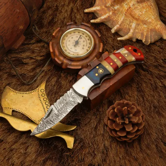 Knives are more than tools—they are extensions of human history, culture, and craftsmanship. From the iconic knife in Rambo that embodies survival toughness, to the curved power of a kukri knife, to the legendary artistry of Damascus knives, every blade tells a story. The Pocket Knife (Pattern Forge) continues this lineage, offering a compact yet strikingly designed piece that blends tradition with modern practicality. The name “Pattern Forge” reflects the spirit of old-world craftsmanship, especially the mesmerizing patterns of Damascus steel. It’s a pocket knife that doesn’t just function well; it carries a legacy forged through centuries of blade-making excellence.